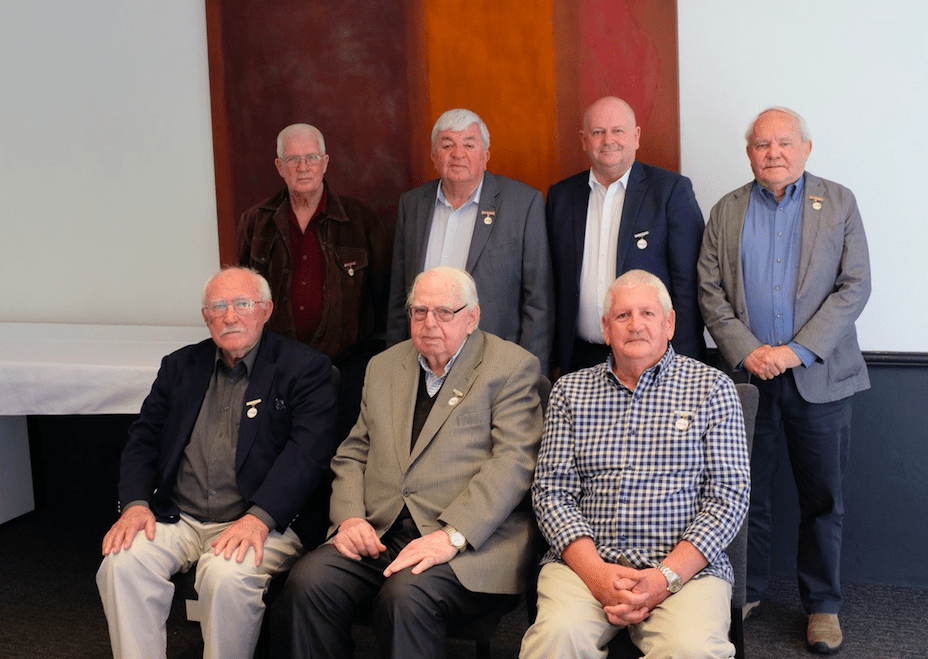 (Sitting L to R) Brian O’Shea, John Miner, Brian Rudder. Absent was Phil Payne who was caught in Queensland’s Covid Travel restrictions and extremely disappointed not to be there.